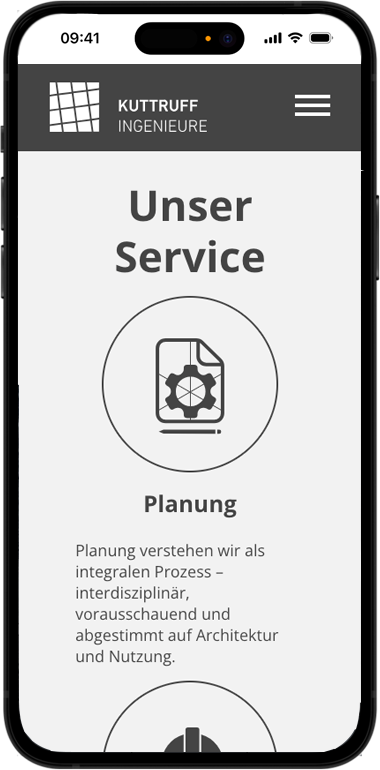 Kuttruff Ingenieure stehen für fundierte Ingenieurleistungen und eine hohe fachliche Kompetenz in ihren Projekten. Um diesen Anspruch auch digital klarer zu transportieren, wurde der bestehende Webauftritt grundlegend überarbeitet. Im Fokus des Relaunchs standen eine moderne technische Basis, ein zeitgemäßes Erscheinungsbild sowie Inhalte, die stärker auf Leistungen, Projekte und Kontaktaufnahme ausgerichtet sind.