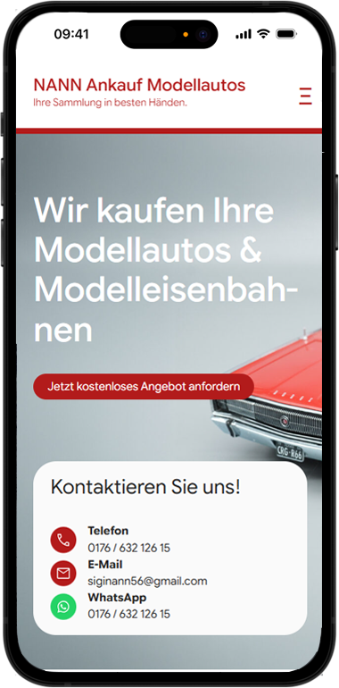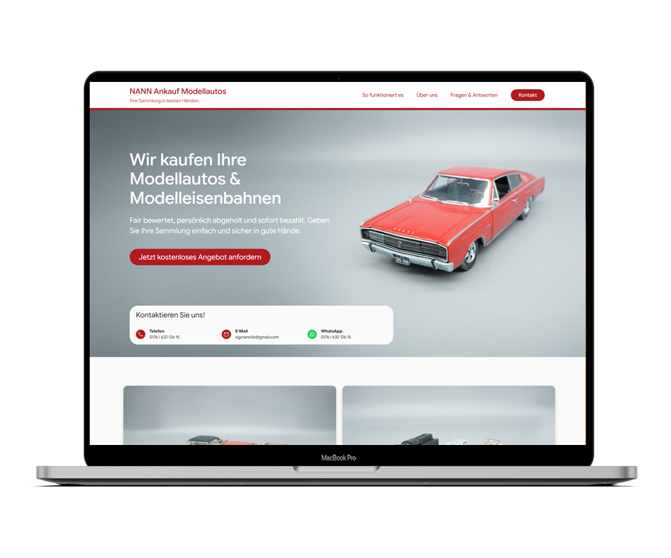 Für NANN Ankauf Modellautos haben wir einen Webauftritt entwickelt, der von Beginn an auf Performance ausgelegt ist. Ziel war es, eine Website zu schaffen, die nicht nur informiert, sondern als zentrale Grundlage für erfolgreiche Google Ads Kampagnen dient und gezielt Anfragen generiert.